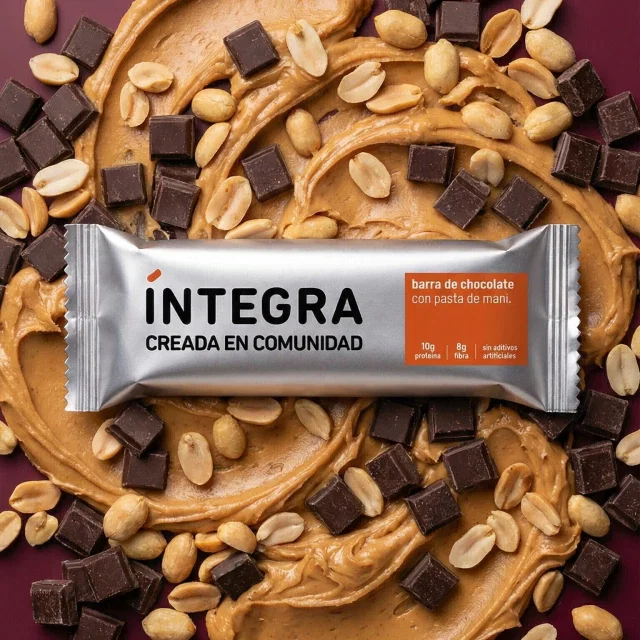 Ingredientes: Jarabe de inulina (fibra de la raíz de achicoria), cobertura de chocolate, pasta de maní, aislado de proteína de soja, pasta de datíl, crispín de proteína de soja, almidón, maní, pasas de uva, cacao en polvo, sal marina, aromas.
