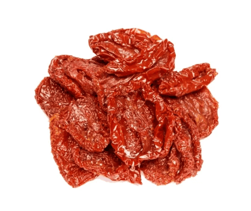 Concentran todo el sabor propio del tomate natural, brindando una opción exquisita y muy afín (con especias, oliva, en salsas). Ingredientes: Tomate. Valor Nutricional: Valor Energético: 64 kcal = 269 kJ; Carbohidratos: 13 g; Proteínas: 3.5 g; Grasas Totales: 0.7 g; Grasas Saturadas: 0.1 g; Grasas Trans: 0 g; Fibra Alimentaria: 3.1 g; Sodio: 26 mg; Porción: 25 g.
