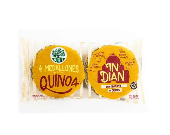 Vegano- Sin T.A.C.C- 100% Naturales Quinoa, arroz yamaní integral, cebolla, batata, aceite de girasol, curry, semillas de sésamo negro, fécula de mandioca, sal, especias. Producto vegano, fuente de fibra, con ingredientes 100% naturales y sin TACC. Presentación: 4 unidades x paquete