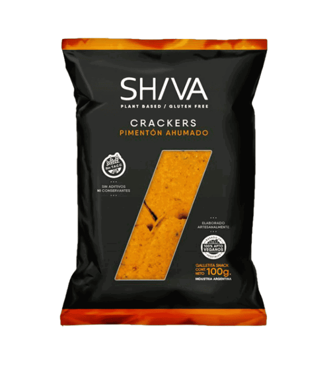 Crackers de Pimenton Ahumado elaborados con ingredientes integrales de primera calidad, horneadas a fuego lento, libres de gluten, sin aditivos ni conservantes. Un snack nutritivo y saludable. Ingredientes: harina de arroz integral, fécula de mandioca, aceite de coco, pimenton ahumado, lino dorado, sal rosada del himlaya, ajo en polvo, chimichurri.