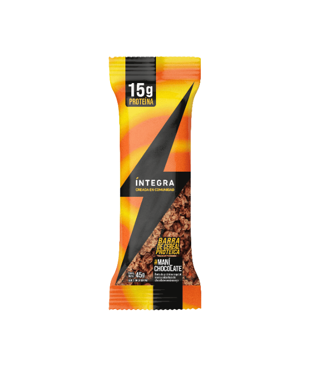 Ingredientes: crispin de proteína vegetal, cobertura de chocolate semiamargo, fibra de la raíz de achicoria (inulina), avena, pasta de mnaí, proteína vegetal texturizada, almibar de azúcar de mascabo, proteína de arveja, maní, cacao en polvo y aroma a vainilla. CONTIENE: AVENA, MANÍ Y SOJA, PUEDE CONTENER: TRIGO, CEBADA, CENTENO, ALMENDRA, NUEZ, AVELLANAS, CASTAÑAS DE CAJÚ Y DERIVADOS DE LECHE.