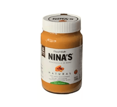 Ingredientes: 100% maní Sin gluten - Sin sal - Sin azúcar- Puro maní seleccionado Elaborado con maní Cordobés de calidad de exportación 8g. de proteína por cuchara Frasco de vidrio 380g. Es natural que el maní y su propio aceite se separen. Mezclar bien después de abrir.