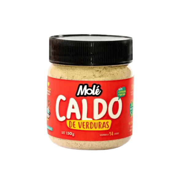 Caldo de Verduras Natural - Sin conservantes - Sin aditivos - Sin adición de sal - Sin grasas totales, trans o saturadas Rinde: 14 porciones. Ingredientes: Cebolla en polvo, zapallo en polvo, zapallo en escamas deshidratado, almidón de mandioca, harina de arroz, zanahoria en polvo, papa en escamas deshidratado, espinaca en polvo, batata en polvo, ajo en polvo, cúrcuma, semillas de apio molidas, espinaca en escamas, pimienta negra, orégano.