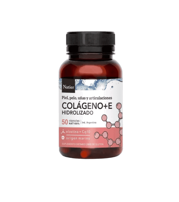 Piel, Pelo y Uñas Saludables. El colágeno es la proteína más abundante en nuestro cuerpo y uno de los principales componentes de: articulaciones, huesos, músculos y piel. A medida que envejecemos la producción de colágeno disminuye y lo notamos en: menor tonicidad cutánea, más arrugas y menor elasticidad en la piel. El aumento en los niveles de colágeno puede ayudar a lucir una piel más firme, aumentar su suavidad y ayudar a que sus células se renueven y reparen, además de contribuir a formar tejido muscular. Su fórmula es de máxima absorción y efectividad al entregar una alta concentración de péptidos de colágeno bio activo. Incluye coenzima Q10 y Vitamina E de alta pureza, antioxidantes que ayudan a neutralizar la acción de los radicales libres y previenen el envejecimiento prematuro. Ingredientes: Hidrolizado de colágeno, Hidrolizado de elastina, Coenzima Q10 y Vitamina E. Modo de uso: ingerir 1 cápsula diaria en cualquier momento del dia o bien 30 minutos antes de de cualquiera de tus principales comidas. Cada cápsula contiene: 195 mg de Hidrolizado de colageno, 135 mg de hidrolizado de elastina, 15 mg de coenzima Q10 y 5 mg de Vitamina E. Se puede consumir en forma continua y no requiere periodos de descanso. Como todo nutriente sus beneficios solo se mantienen mientras perdure la ingesta. APTO VEGANOS - SIN TACC