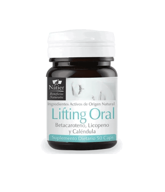 Las nuevas terapias antiage trabajan de manera integral. Para ello la ciencia nutricosmética nos propone una combinación entre nutrición y belleza que consiste en aportar a nuestro organismo nutrientes activos estrictamente seleccionados. A través de ellos se logran cambios estructurales a nivel estético. De esta forma logramos desarrollar Lifting Oral, un suplemento dietario nutricosmetico que actúa con mayor profundidad y eficacia que los tratamientos tópicos. Su fórmula esta compuesta por: Betacaroteno: poderoso antioxidante activador de la melanina que previene la formación de manchas y lunares al mismo tiempo que cuida la salud de la piel. Licopeno: es un carotenoide y fotoprotector. La mayor parte de sus efectos beneficiosos derivan en su capacidad de "capturar" radicales libres. Posee excelentes propiedades anti envejecimiento celular. Caléndula: proporciona una protección natural que reduce la aparición de manchas y arrugas. Devuelve vitalidad a la piel mientras la nutre y protege. Modo de Uso: Se ingiere de 1 a 2 cápsulas diarias antes de las principales comidas. Cada cápsula contiene: 120 mg de Caléndula (regederador de la piel), 110 mg de Zanahoria (pro-vitamina A), 99,40 mg de extracto seco de tomate (licopeno), 20 mg de vitamina C y 600 mcgr de vitamina A.