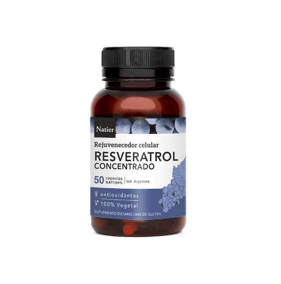 El resveratrol es un polifenol de origen 100% vegetal obtenido a partir de la piel de la uva. Posee una potente actividad antioxidante que ayuda a eliminar los radicales libres que dañan las células en algunos procesos del organismo. Además existen factores externos como la mala alimentación la contaminación ambiental o el cigarrillo que aumentan excesivamente la cantidad de radicales, siendo la causa principal del envejecimiento prematuro a nivel celular. En los últimos años, la comunidad científica contra el envejecimiento ha descubierto que el aporte nutricional continuo de resveratrol activa una familia de genes llamada SIRT (Sirtuinas) las cuales combaten los procesos de envejecimiento y favorecen la longevidad celular. Natier utiliza para su formulación 100% resveratrol de origen suizo con el objetivo de lograr mayor potencia en los beneficios y propiedades nutricionales, superando exigentes controles de calidad. PREVIENE LA OXIDACIÓN CELULAR DISMINUYE LA RESISTENCIA A LA INSULINA AUMENTA LA PROTECCIÓN CARDIOVASCULAR MEJORA LA SALUD Y APARIENCIA DE LA PIEL COMBATE LA ACCIÓN DE LOS RADICALES LIBRES