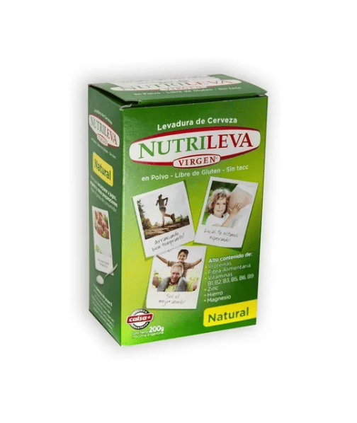Sin Gluten. Por su alto contenido en proteínas, vitaminas, carbohidratos, minerales y fibras, la levadura de cerveza es un excelente complemento de la dieta diaria. MARCA: Calsa Nutrileva Beneficios: Fuente de proteínas, fibra y vitaminas del complejo B. Aporta energía, favorece la salud del sistema nervioso y el aparato digestivo. Combate el cansancio físico, la fatiga y el estrés. Facilita la regeneración de la flora bacteriana intestinal. Usos / Preparación: Puede agregarse a jugos, yogures, ensaladas, sopas, carnes y salsas. Ingredientes: Levadura de cerveza en polvo. Valor Nutricional: Valor Energético: 64 kcal=269 kj; Carbohidratos: 6,8 g; Proteínas: 8,7 g; Fibra Alimentaria: 4,0 g; Sodio: 17 mg; Magnesio: 22,4 mg; Hierro: 0,9 mg; Niacina: 40 mg; Ácido fólico: 500 mcg; Porción: 20 g (1 cuchara sopera colmada).